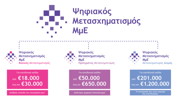 Προκηρύχθηκε η Δέσμη Δράσεων «Ψηφιακός Μετασχηματισμός ΜμΕ» του Προγράμματος «Ανταγωνιστικότητα» με συνολικό προϋπολογισμό 300.000.000€, η οποία στοχεύει στην αντιμετώπιση της υστέρησης των ελληνικών επιχειρήσεων στην υιοθέτηση και ενσωμάτωση των σύγχρονων ψηφιακών τεχνολογιών στην παραγωγική τους δραστηριότητα.