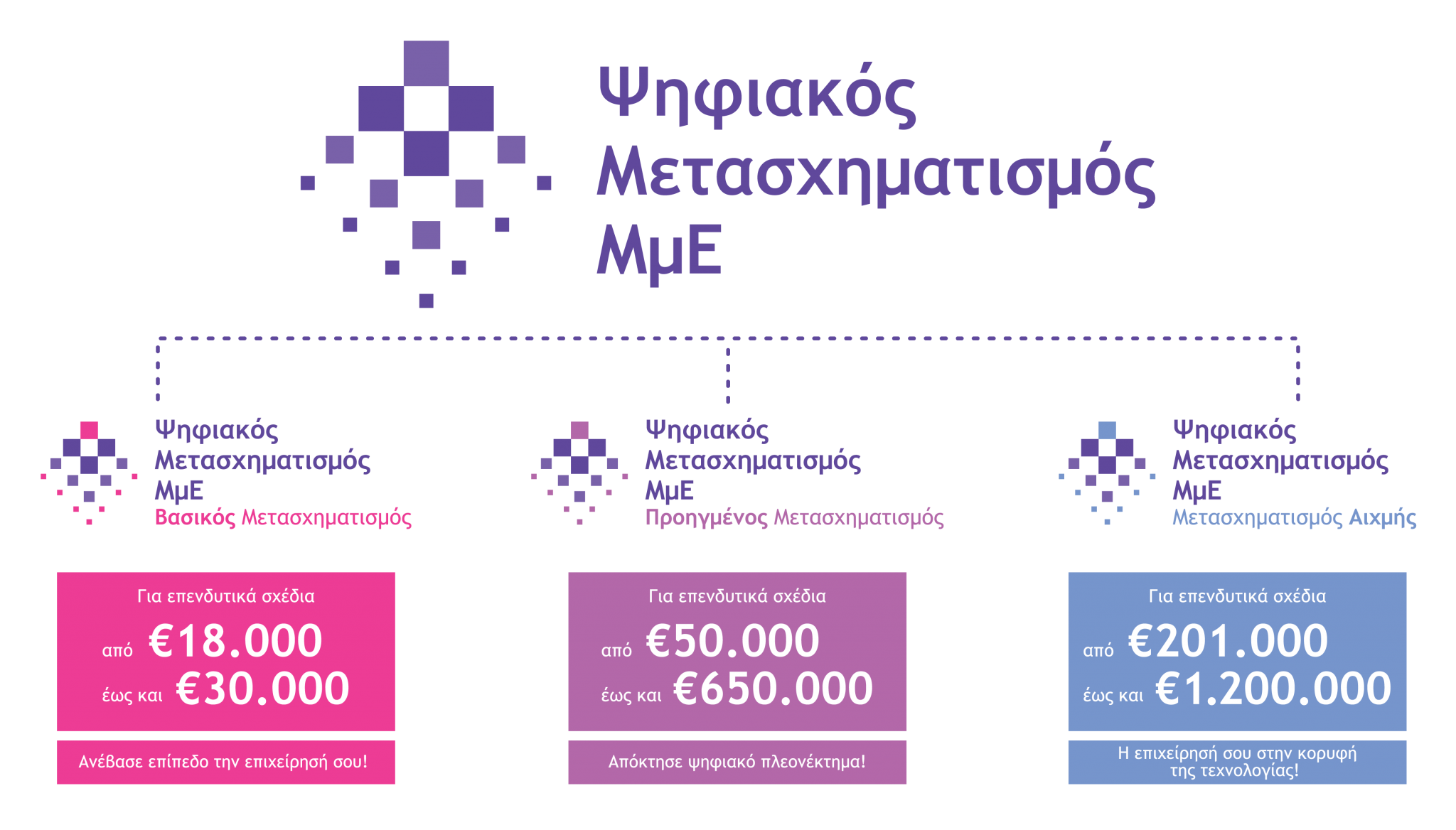 Αφορά επιχειρήσεις οι οποίες στοχεύουν στη διεύρυνση της ψηφιακής και τεχνολογικής τους ωριμότητας με ολοκληρωμένες επενδύσεις σε νέες ΤΠΕ που θα αναβαθμίσουν την ανταγωνιστικότητά τους.