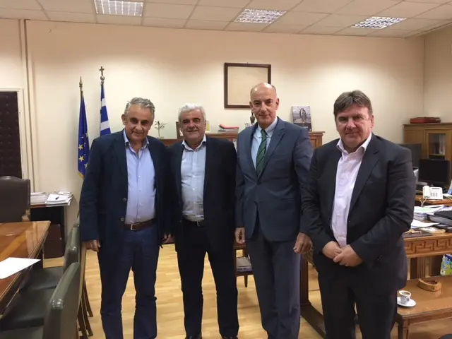 Σε ιδιαίτερα θετικό κλίμα συνεργασίας ήταν η συνάντηση που πραγματοποίησαν την Τετάρτη 25 Οκτωβρίου, ο Αντιπεριφερειάρχης Πειραιά κ. Γ. Γαβρίλης και ο Πρόεδρος του Εμπορικού Συλλόγου Πειραιώς κ. Ν. Μανεσιώτης με τον Γενικό Γραμματέα Εμπορίου & Προστασίας Καταναλωτή κ. Α. Παπαδεράκη στα γραφεία του, στην οποία παρευρέθηκαν ο κ. Χ. Νικόλσκι, Προϊστάμενος της Δ/νσης θεσμικών ρυθμίσεων & εποπτείας αγοράς προϊόντων και υπηρεσιών της Γ.Γ. Εμπορίου & Προστασίας Καταναλωτή, η κ. Μ. Δαρζέντα τμηματάρχης του Τμήματος Εμπορίου της Δ/νσης Ανάπτυξης Αντιπεριφέρειας Πειραιά, η κ. Δ. Πετράκου ειδική σύμβουλος του Αντιπεριφερειάρχη Πειραιά και ο κ. Β. Μαστρογιάννης, εκτελεστικός υπεύθυνος του Συντονιστικού Κέντρου Αντιμετώπισης Παρεμπορίου.